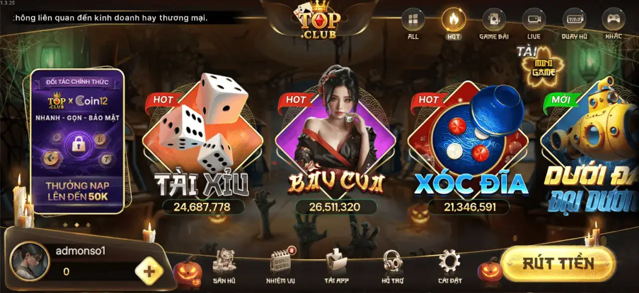 - Chọn biểu tượng TOPCLUB để trải nghiệm